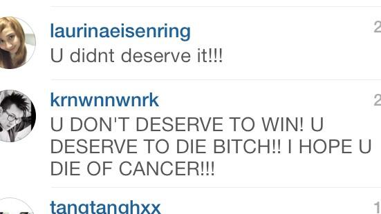 Some comments went as far as to blame her win on unrelated issues, like the missing Malaysia Airlines MH370 flight, and insulted the winner and the organisers.