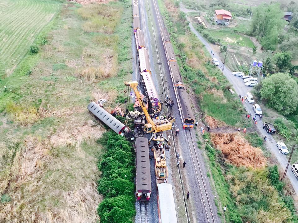 “Of the 52 injured, six people remain in hospital, two are in critical condition,” Thanongsak Kongprasert, a senior official at the State Railway of Thailand, told AFP. He added that six carriages had fallen off the tracks in the crash and that the two victims fighting for their lives in hospital were the driver and technician on board the Bangkok-Denchai train.