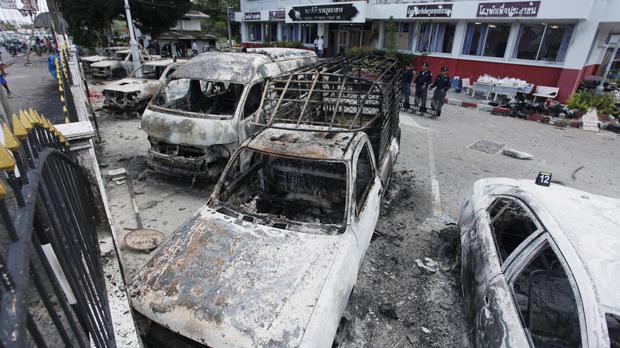 PHUKET, Thailand: An angry crowd hurled homemade fire bombs and torched vehicles at a police station on Thailand’s resort island of Phuket to protest the deaths of two young men who died in a motorcycle crash while being chased by police, authorities said Sunday.