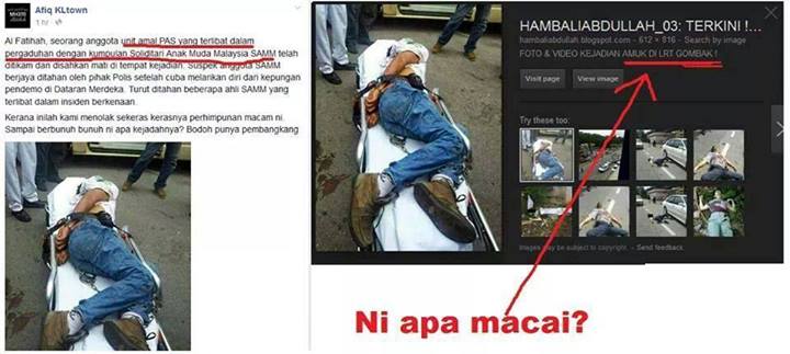 He said a picture, allegedly sent on Papagomo’s Twitter, showing a participant lying on stretcher with a caption saying that a member of the PAS’ Amal Unit who was involved in a fight with SAMM was stabbed and died was an old photograph.