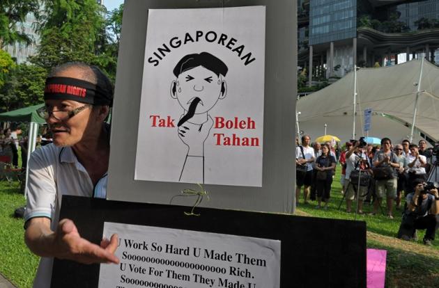Video: Singapore 新加坡 Protesters attack immigration, job policies 2014 May 1