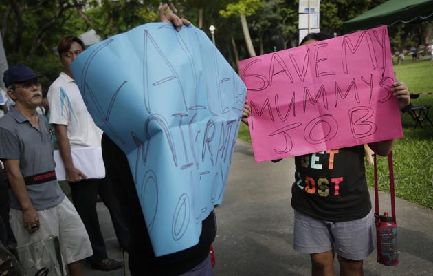 SINGAPORE (AP) — About 350 people gathered at a park in Singapore on Thursday to protest against immigration policies that they say are too lax.