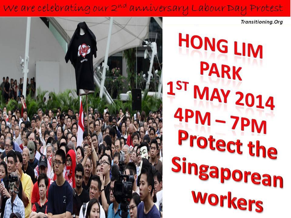 Transitioning.org will be conducting our second labour day protest on 1st May (Thurs) at Hong Lim Park from 4 to 7pm. The theme of the event is Protect The Singaporean Workers.