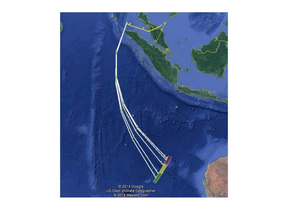 The map detailing the flight path of flight MH370 according to the preliminary report.