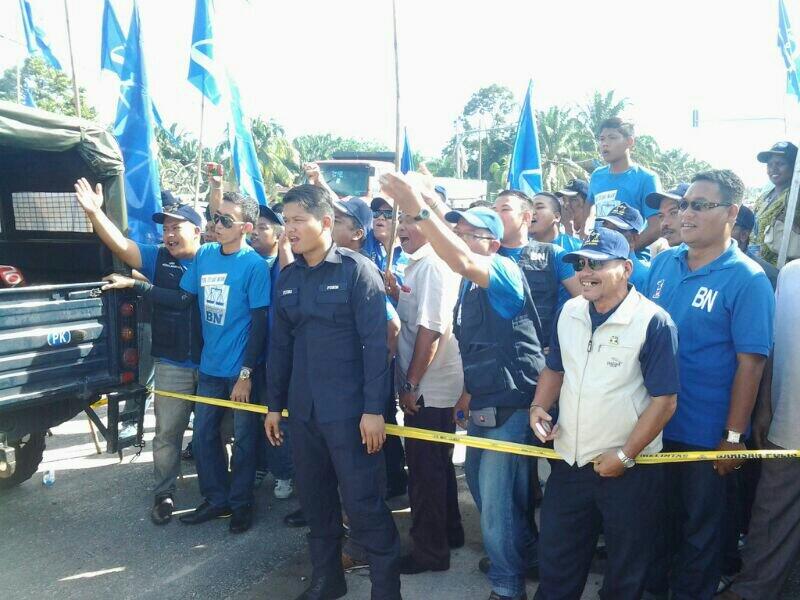 A standoff between BN and DAP supporters at Kampung Bahagia that started at 10AM is still on going as of 3.45PM. The BN supporters have been jeering the DAP group despite the hot weather, chanting ‘DAP babi’ and other insults.