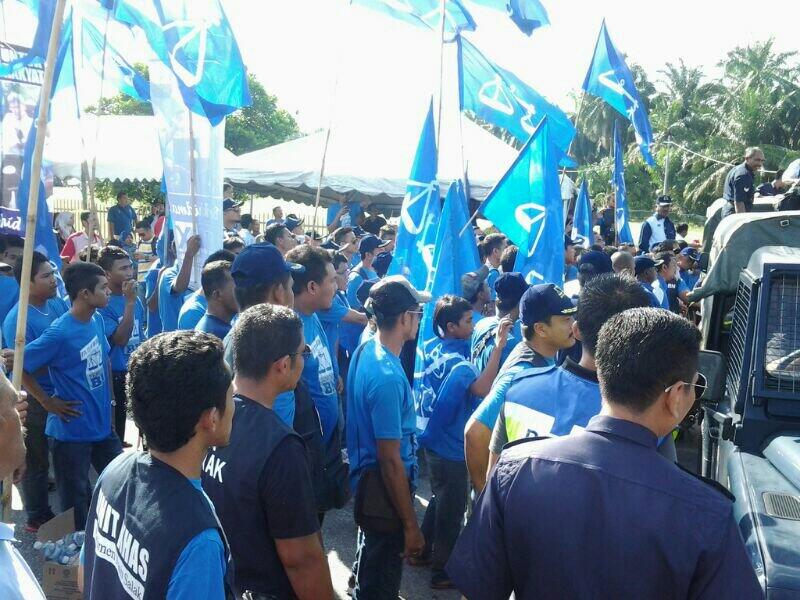 TELUK INTAN: Scores of supporters from Barisan Nasional and Pakatan Rakyat gathered near the nomination centre in Taman Cicely here Monday morning, ahead of nominations for the May 31 by-election.