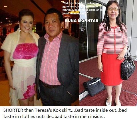 … Kinabatangan MP Datuk Bung Mokhtar Radin uttered a sexist remark against Fong Poh Kuan (DAP – Batu Gajah) while they were in a heated argument over the ceiling leakage in the Parliament building. Both of them said: “Mana ada bocor? Batu Gajah pun bocor tiap-tiap bulan juga (Where is the leak? The Batu Gajah MP leaks every month too.)” http://www.thestar.com.my/story.aspx/?file=%2f2007%2f5%2f16%2fnation%2f17736594 —– BUNG MOKHTAR HAD COMPLAINED THAT TERESA KOK WAS DRESSED ‘INAPPROPRIATELY’ (DID HE MEAN ‘SEXILY’?) That was in April 2014. “The skirt goes until the knees, I can see the knees, how can this dress be allowed?” he asked. NOW, SOMEONE OR SEVERAL PEOPLE HAVE TRACKED HIM AND HIS 2ND WIFE DOWN…