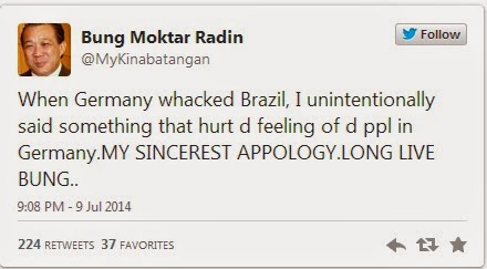 Ah, and the international mockery begins (again). @TIME writes about Bung’s distasteful tweet http://time.com/2968793/world-cup-germany-brazil-hitler-malaysia-bung-mokhtar-radin-soccer-football/ … (via @joonian)