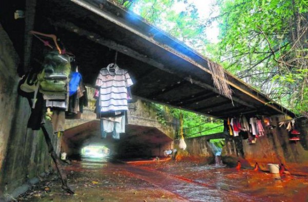 SOMEONE HAS MADE HIMSELF A HOME OVER A CANAL ALONG BUKIT PANJANG ROAD…