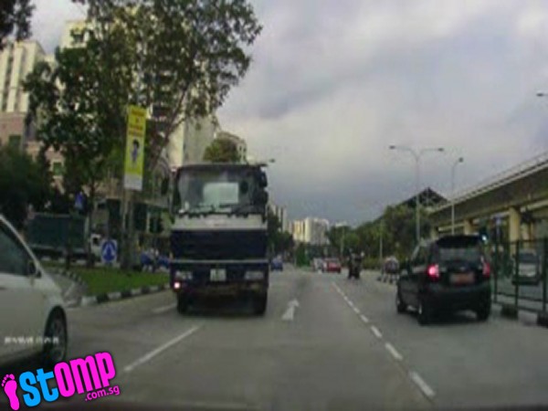 Stomper Victor sent this video to Stomp, which shows a cement truck goes against the flow of traffic at a traffic junction in Sembawang Drive.