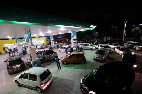 Motorists in Malaysia rush to fill up their vehicles before the fuel hike kicks in at midnight http://cna.asia/1sMXK0f