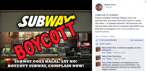 BUT SOME PEOPLE IN THE UK ARE UPSET THAT SUBWAY THERE IS GOING HALAL…