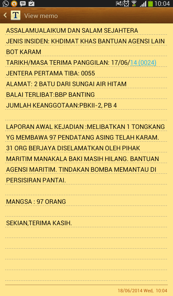 [BREAKING NEWS] Boat carrying 97 passengers sinks off Banting, 31 were rescued by the maritime officers while others are still missing. More to follow: http://www.malaysiakini.com