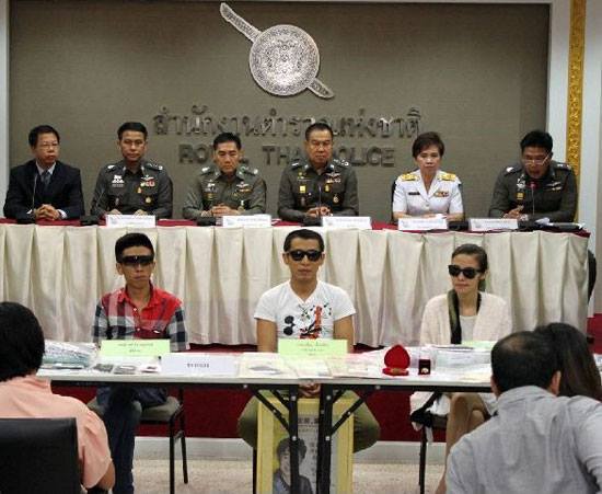Mr Geng was flown to Bangkok, where he and his compatriots were presented to the press yesterday at a conference led by national police chief Gen Somyot Pumpunmuang.