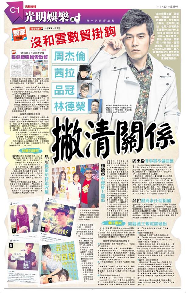 “未來世界首富”張健繼以“陪睡論”形容本地娛樂圈,投下重磅炸彈後,近日再出新招,在照片和視頻分享社群Instagram上傳多張他和馬新港台藝人的 合成照,包括周杰倫、鄧紫棋、JJ林俊杰、品冠及茜拉,揚言這些藝人已加入雲數貿。藝人所屬的經紀公司大感震驚,斬釘截鐵表示與雲貿無關係