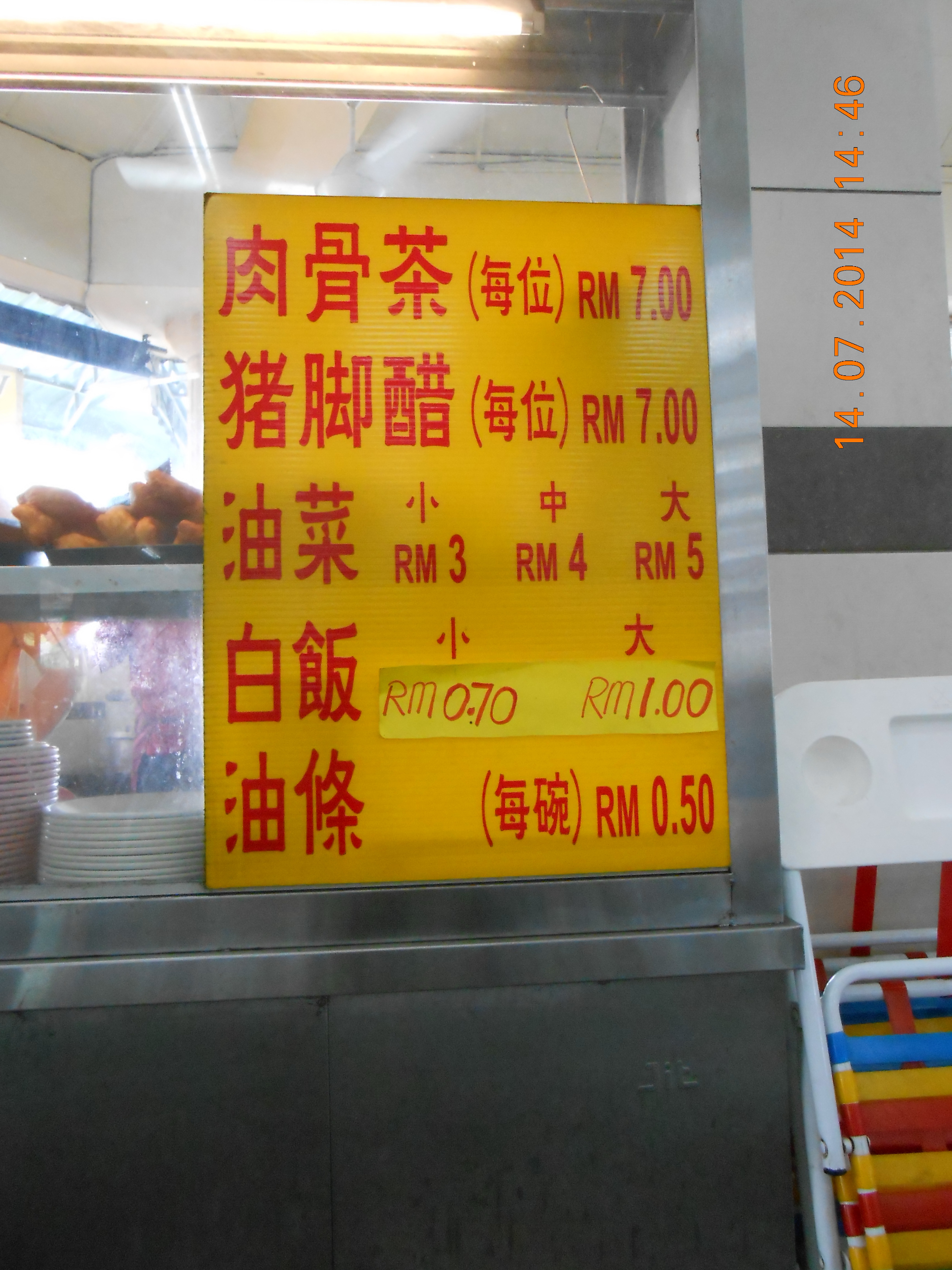 It says: Bakuteh for one RM7 (it used to be RM6.50); big rice RM1 (up from 70 sen); small rice 70 sen (up from 50sen); yow cha kwai 50 sen (up from 40 sen).