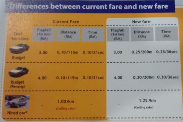 According to a Land Public Transport Commission (SPAD) fact sheet, flag-down rates for budget taxis nationwide will remain at RM3, but the distance and time rates will be revised.
