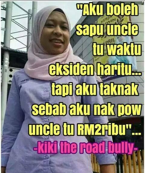 1. U’re a woman. 2. U’re malay. 3. Buat malu satu malaysia tgk kau mengamuk mcm gorilla sbb accident sket je.
