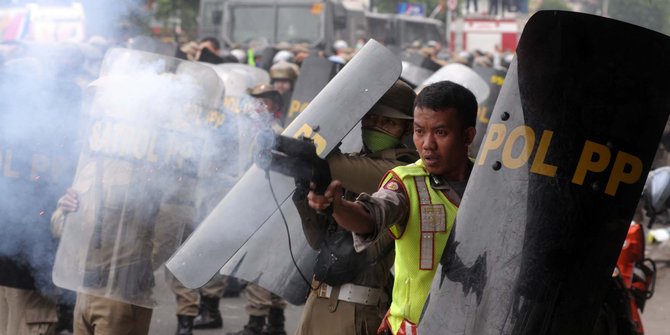 Warga Kampung Pulo bentrok dengan Satpol PP. ©2015 merdeka.com/imam buhori