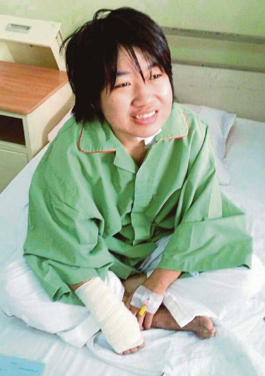 The attack left Madam Toh with bruises on her arms and a fractured metatarsal bone in the foot.