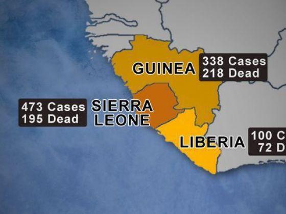 THE 3 WEST AFRICAN NATIONS WITH THE EBOLA EPIDEMIC ARE SIERRA LEONE, GUINEA AND LIBERIA.