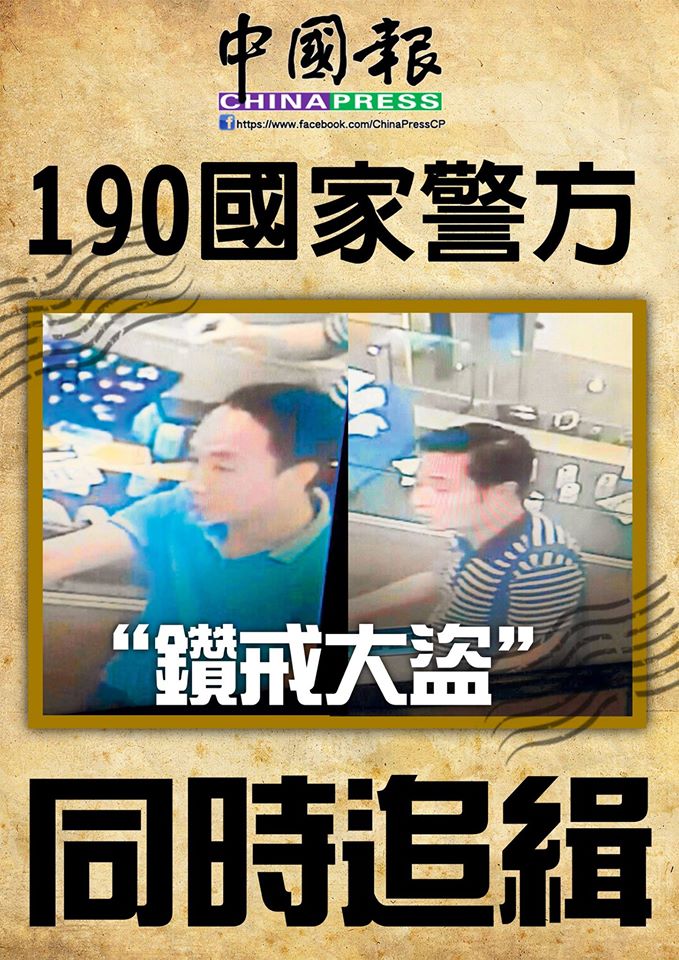武吉阿曼警察總部的國際刑警部已將2名珠寶大盜的照片,發佈給190個成員國的國際刑警,以調查2人的身分及涉及的其他珠寶偷竊案。