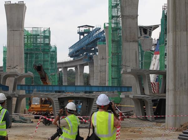 A span of the MRT guide way had dislodged from its piers and fell at 8.30pm yesterday while construction work on the parapet for the guideway was being carried out, reported Bernama.