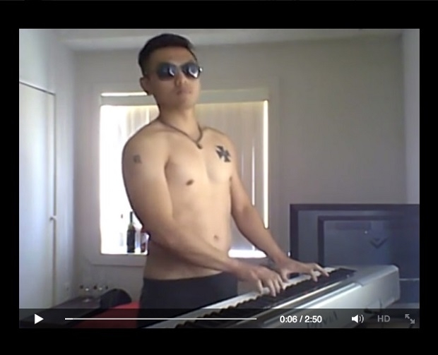 A screengrab of the video shows Alvin Tan appearing topless with a pair of sunglasses on, and playing a keyboard while reciting the azan in full.