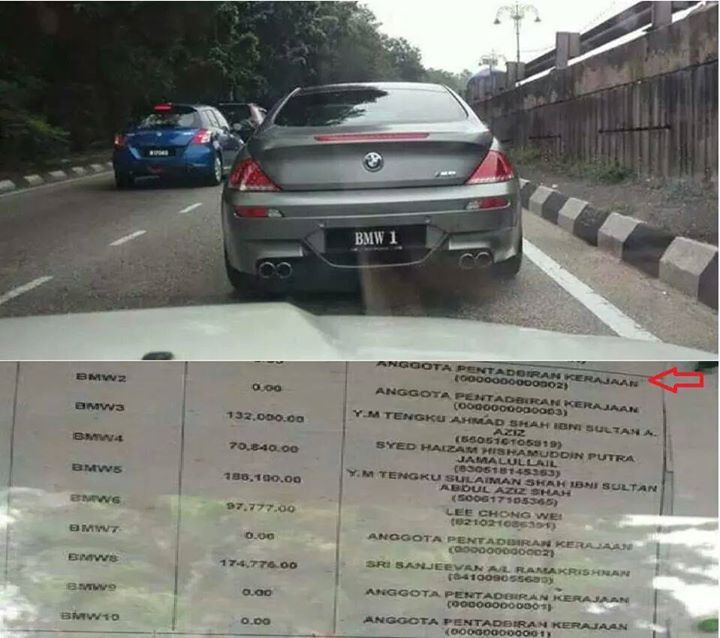 The “Anggota Pentadbiran Kerajaan” (Government Civil Servant paid RM 0 for BMW1 license plate and look at the car he drives – BMW M6 series which cost roughly RM800,000 (US$270,000). What the fuck!
