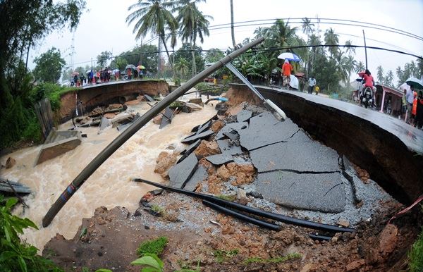 Road collapses in Slim River