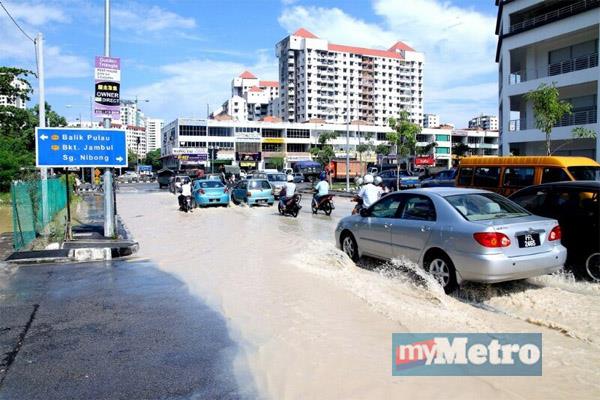 Heavy rain which continued for about an hour resulted in flash floods in Kampung Terang, Pulau Betong, Bayan Lepas, Batu Maung and Teluk Kumbar.
