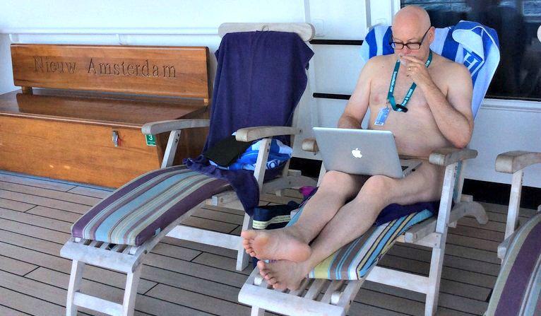 He also went on a cruise on a chartered Holland America ship that had been “commandeered by nudists.” Princess Cruises and other liners do the same thing.