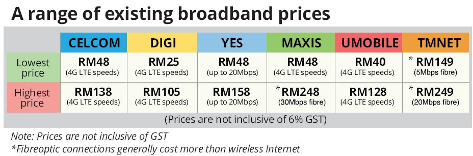 KUALA LUMPUR: Good news for Internet users. Charges for broadband services are expected to drop by more than 6%, effectively leading to lower prices for such services despite the introduction of the Goods and Services Tax (GST).