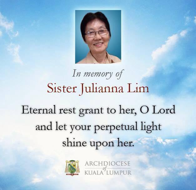 Just attended the funeral of Juliana Lim, an elderly nun who died after being attacked in a robbery attempt outside the Visitation church in Seremban.
