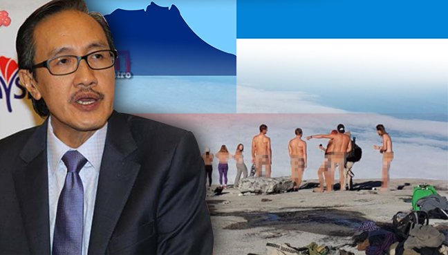 KOTA KINABALU, June 2 — Authorities are investigating reports that a group of tourists stripped naked for photographs on the peak of Mount Kinabalu here. Sabah Parks director Dr Jamili Nais said they were aware of the photographs and were looking into the case. The images being posted on Facebook and spread through Whatsapp show a group of Caucasian-looking adults in various states of undress and posing on what appears to be the distinctive Low’s peak on Mount Kinabalu. Mount Kinabalu, part of the Kinabalu Park World Heritage Site, is sacred to the locals, some of whom deem it the final resting place of their ancestors. The local Dusun community still hold yearly sacrificial rituals to appease the spirits and ask for permission for the safety of their climbers. – See more at: http://www.themalaymailonline.com/malaysia/article/butt-naked-authorities-probing-reports-of-nude-tourists-on-mount-kinabalu?utm_medium=twitter&utm_source=twitterfeed#sthash.0Oby2fWF.dpuf —