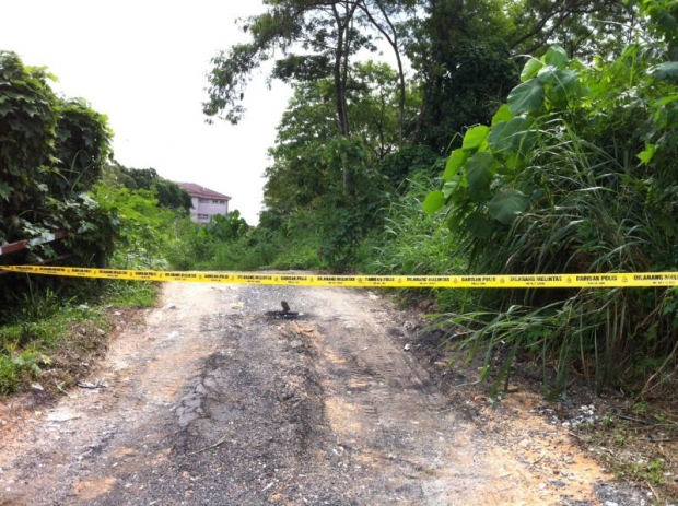 Police tape cordoning off Bukit Kiara in Taman Tun Dr Ismail on June 3 after suspected armed men escaped there. ― Picture by Boo Su-Lyn