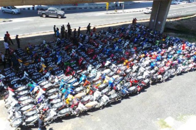 Their motorcycles were also confiscated and neatly placed together.