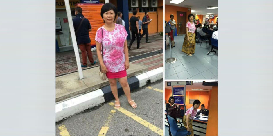— This respectable-looking lady said she was forced to wear a sarong before the JPJ would serve her!