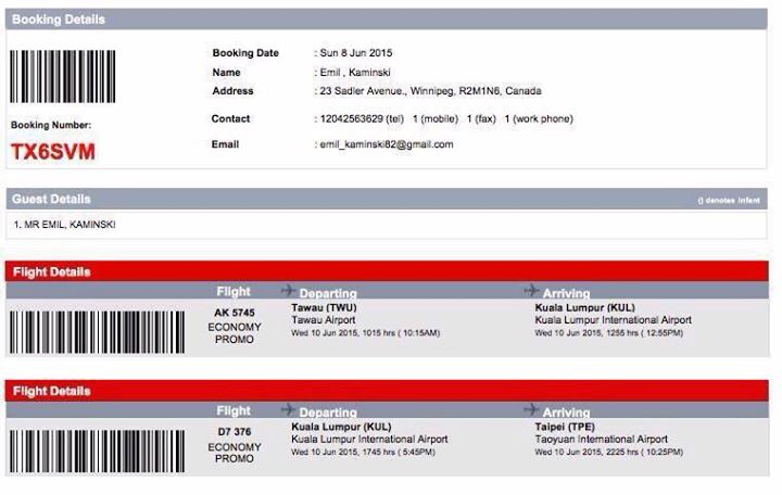 Detail tiket mamat Emil Kaminski yg akn terbang drpd tawau ke KL. Hopefully tiada org kg ku cari ko d airport.