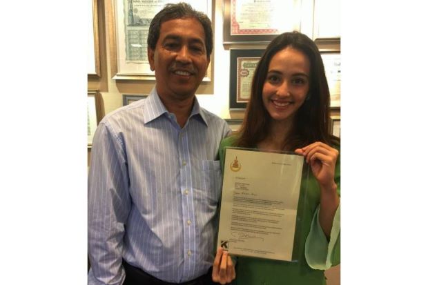 Farah, accompanied by her father Abdul Hadi Ahmad, received the letter from a Selangor Istana official.