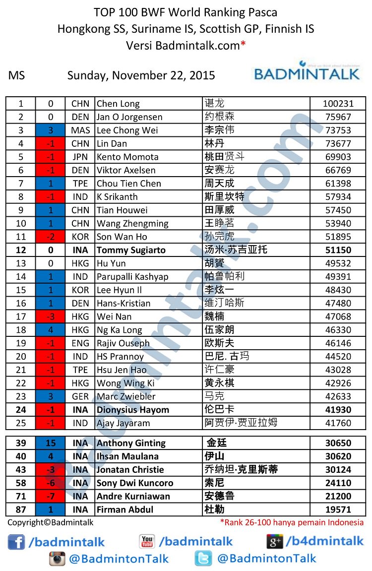 #BWFRankingPrediction26Nov15 Let’s Gv @LeeChongWei a big round of applause! Welcome to TOP3! http://www.m.badmintalk.com/forum/Prediksi-Ranking-TOP-100-Pemain-Bulutangkis-Indonesia-dan-Road-to-Rio-2016-TOP-50-Hongkong-SS-Suriname-IS-Scottish-GP-Finnish-IS.htm …