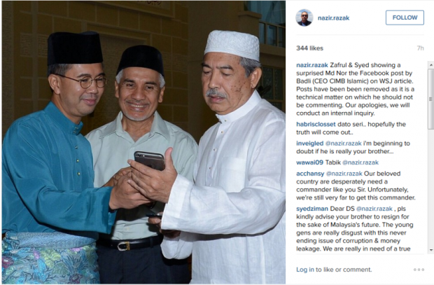 “Our apologies, we will conduct an internal inquiry,” Nazir said in a caption to the photo-sharing service tagging CIMB Group CEO Tengku Datuk Zafrul Aziz and CIMB Islamic chairman Datuk Dr Syed Muhamad Syed Abdul Kadir.