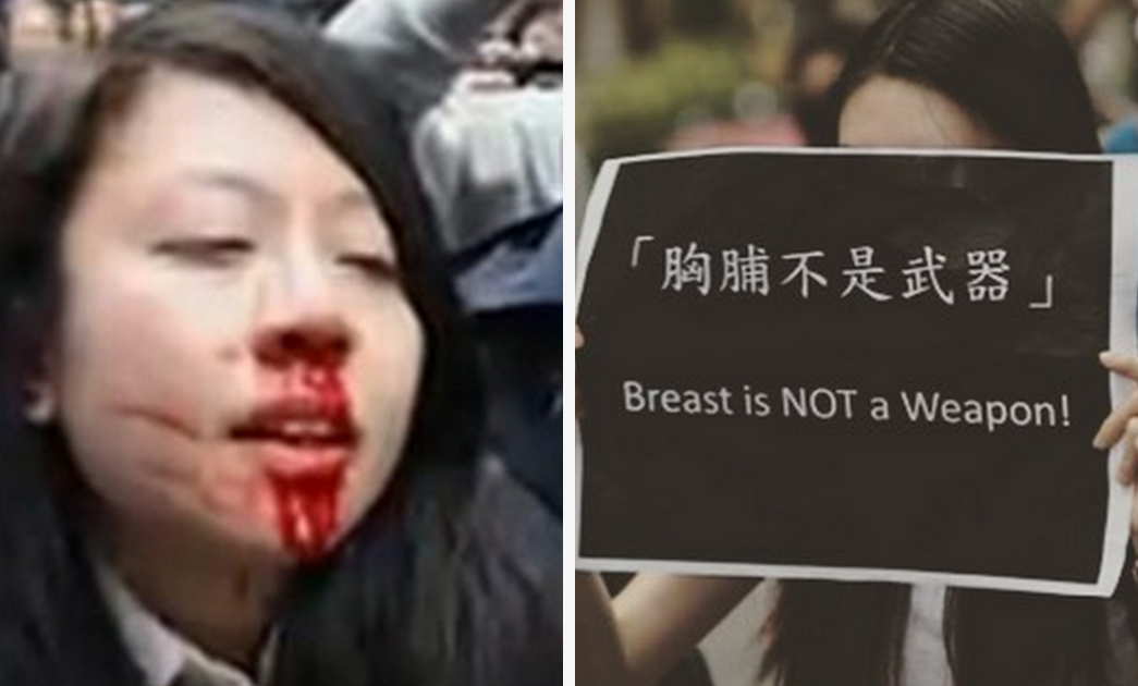 ‘Breast is not a weapon,’ Hong Kong protesters shout as they gather at police headquarters. http://ow.ly/QoTHV