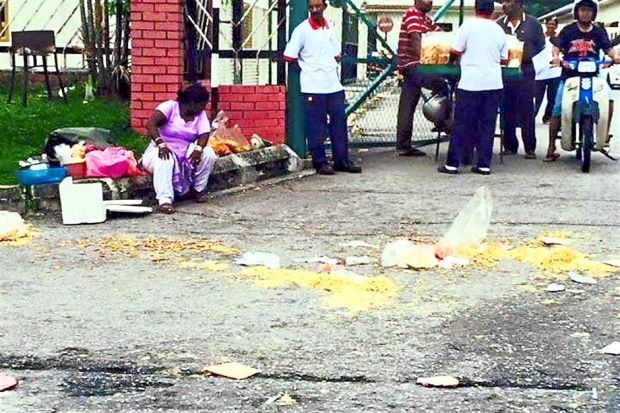 However, one vendor stayed behind and tipped her Kacang Putih to the ground in an attempt to prevent action being taken against her.