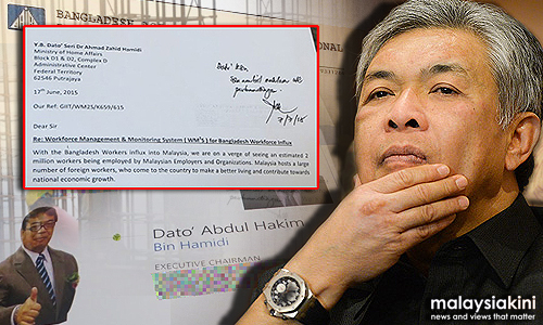 The handling of foreign workers goes through the home ministry, a portfolio held by Ahmad Zahid.