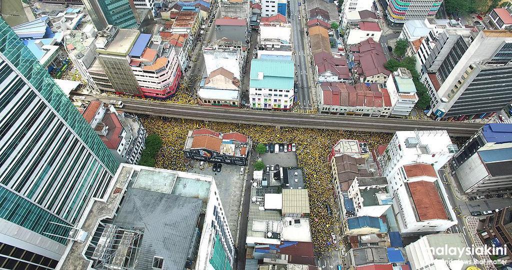 Pemandangan atas keadaan di Dataran Merdeka dan Jalan Tun Perak telah dipenuhi oleh ribuan peserta #Bersih4.0.