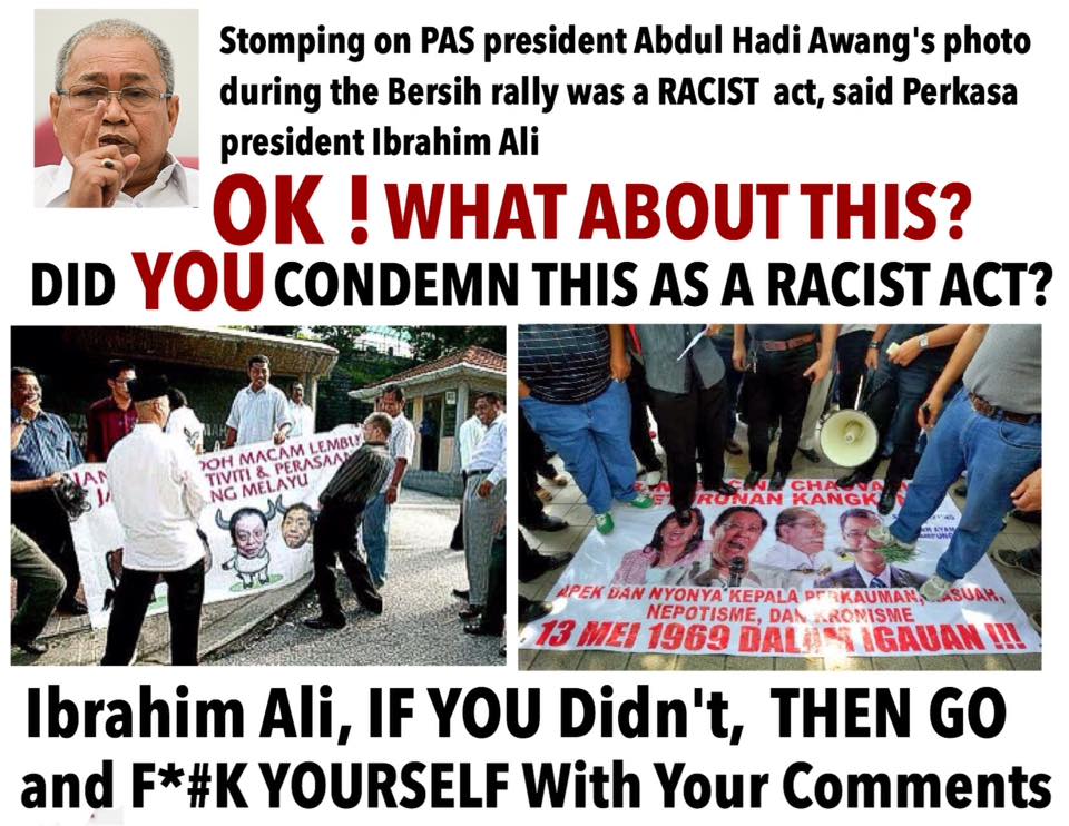It was reported that the police are investigating into the matter after pictures emerged from Utusan Malaysia and Sinar Harian showing rallygoers stepping on Najib and Abdul Hadi’s images.