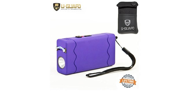 Stun Gun Flashlight With Safety Disable Pin Non lethal Self Defense Weapon. Top Rated Pocket Stun Guns With FREE Holster & Case. High Volt & Amp Best Stun Gun Taser Alternative, (PURPLE) Coated Grip.