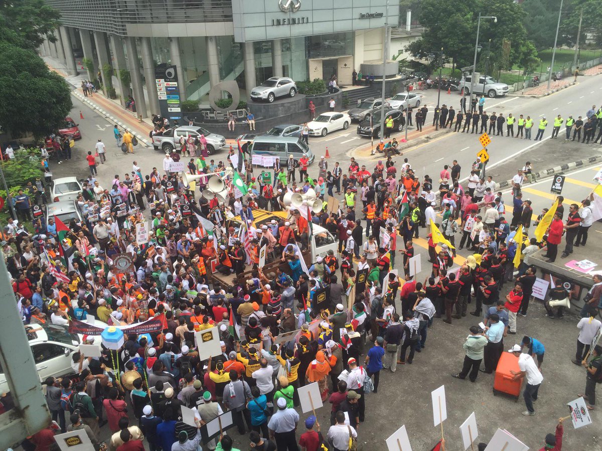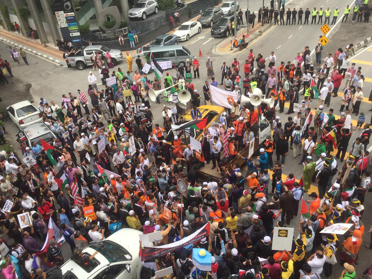 #KualaLumpur: Over 30 Malay-Muslim NGOs are gathered outside the US embassy right now, for the “Himpunan Kemarahan”.