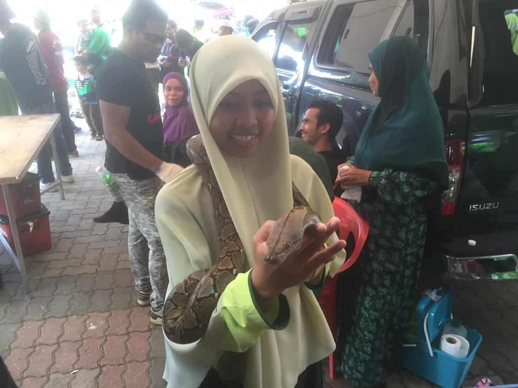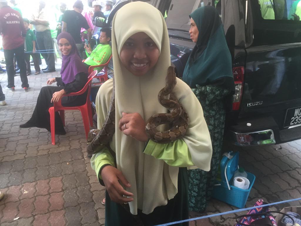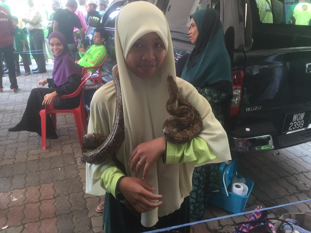 There is a snake exhibition at #H60K. Check this girl out with her python! @themmailonline